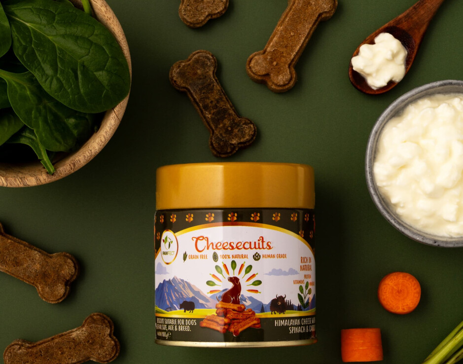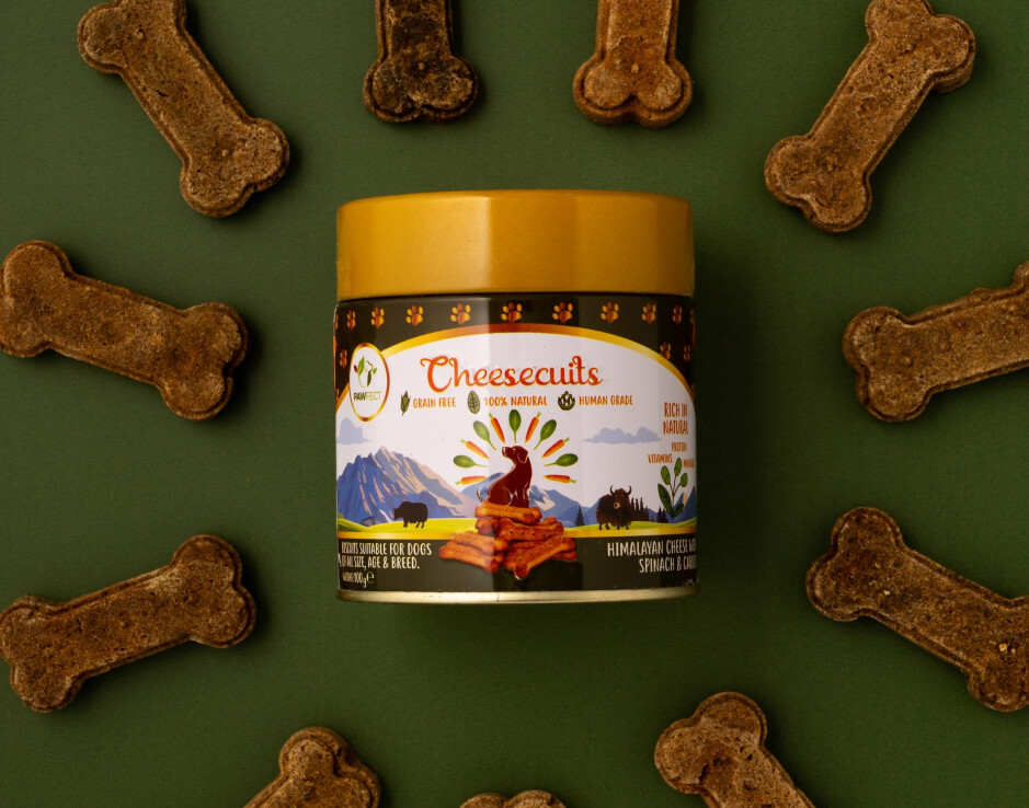 Deze voedzame koekjes bestaan voor minimaal 70% uit authentieke Himalaya kaas.