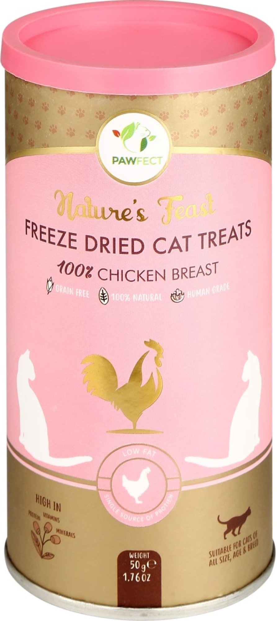 100% natuurlijk, graan- en glutenvrij: de snacks bevatten geen toegevoegde granen, tarwe, maïs of soja. Ze zijn gevriesdroogd om alle voedingsstoffen te behouden, waardoor jouw kat geniet van gezonde snacks.