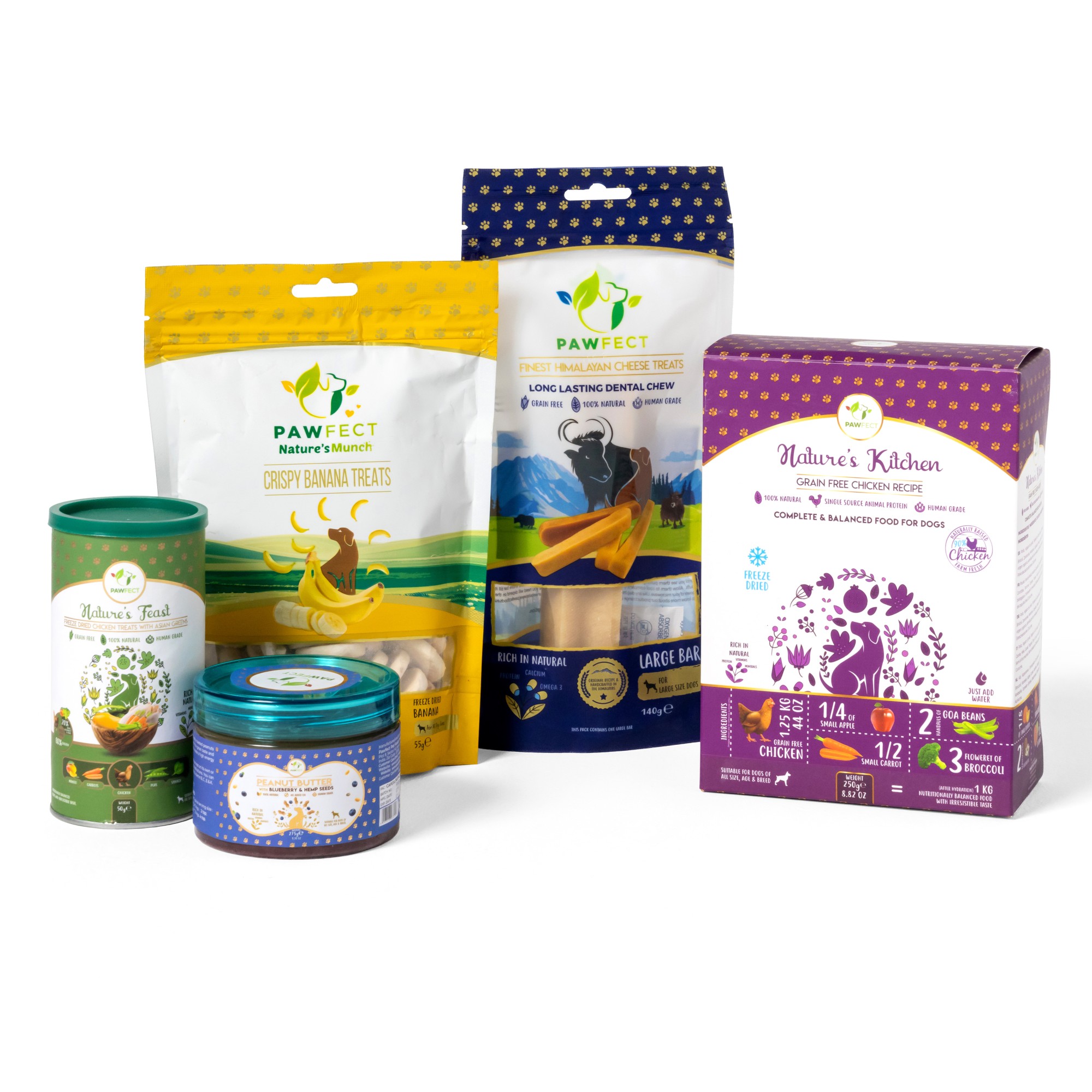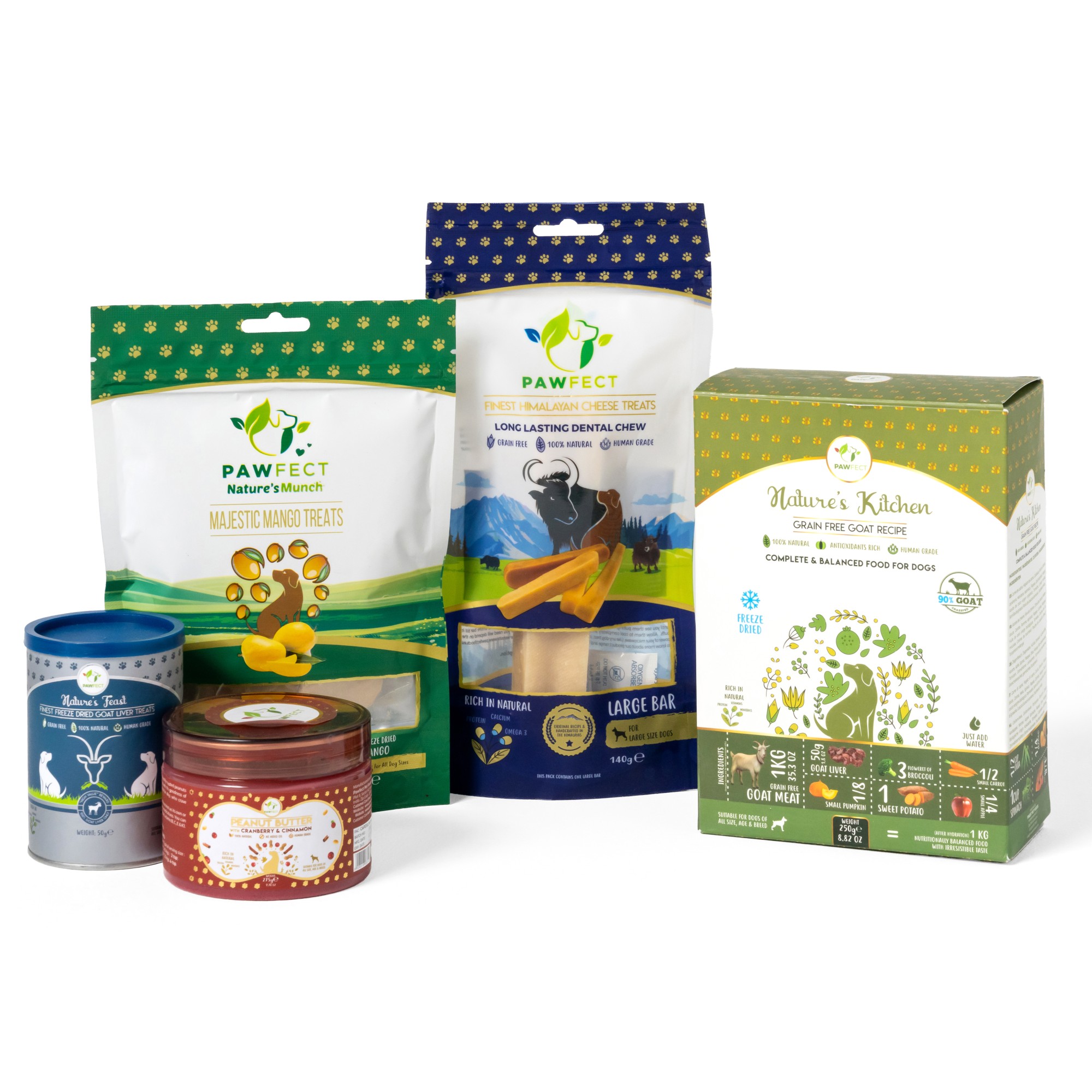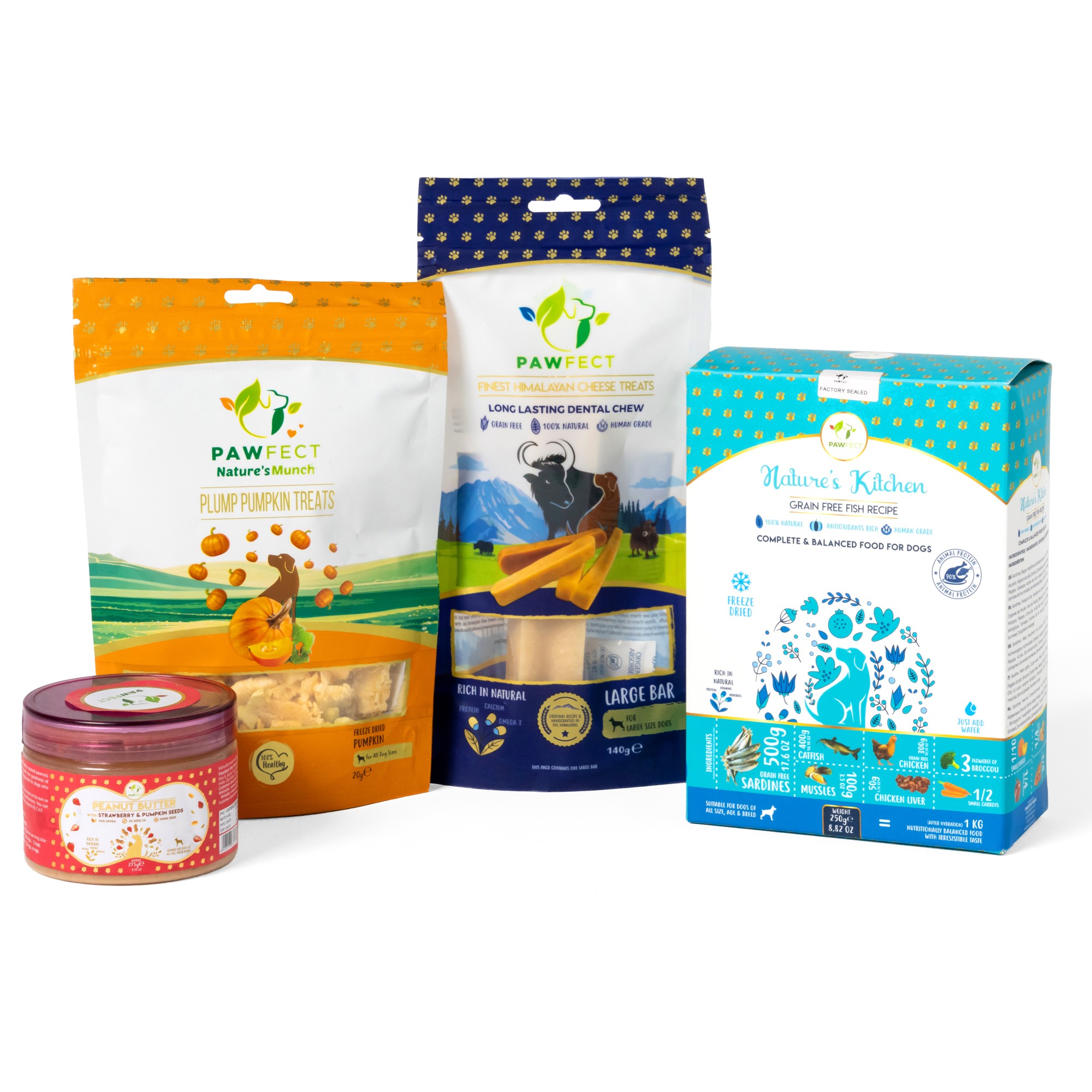 Bestel eenmalig een try-out box met droogvoeding en snacks als proef. 'The Pawfect way' om kennis te maken met al onze natuurlijke, gezonde diervoeding en snacks: